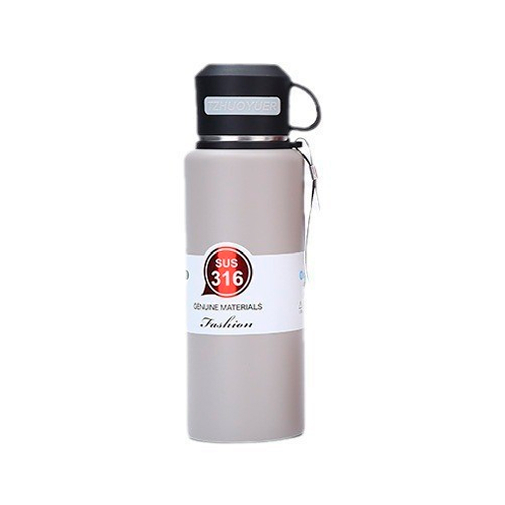 Спортивна термопляшка Merlion, об'єм 350 мл., подвійна кришка з ручкою, колба з нержавіючої сталі, сіра