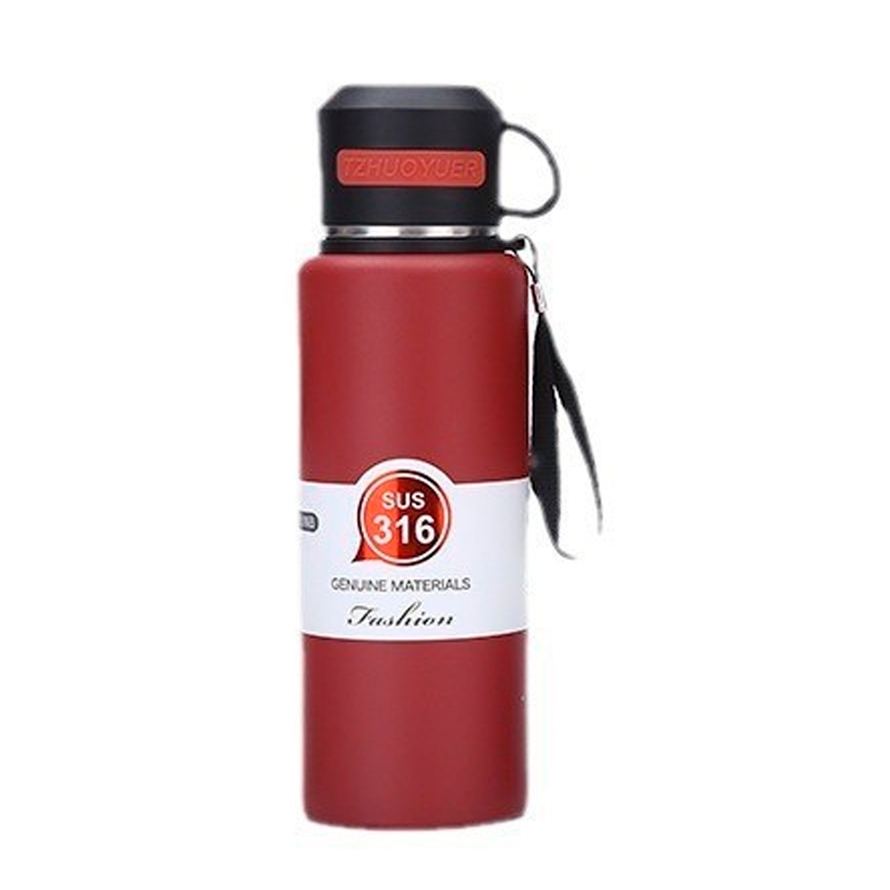 Спортивна термопляшка Merlion, об'єм 500 мл., подвійна кришка з ручкою, колба з нержавіючої сталі, червона