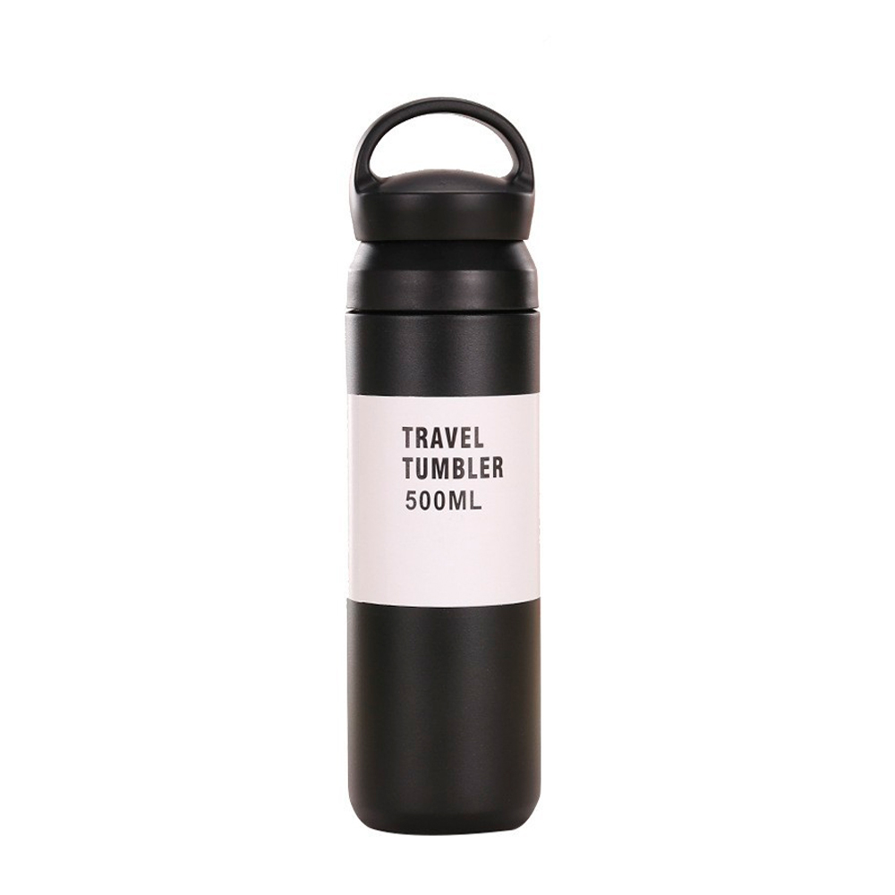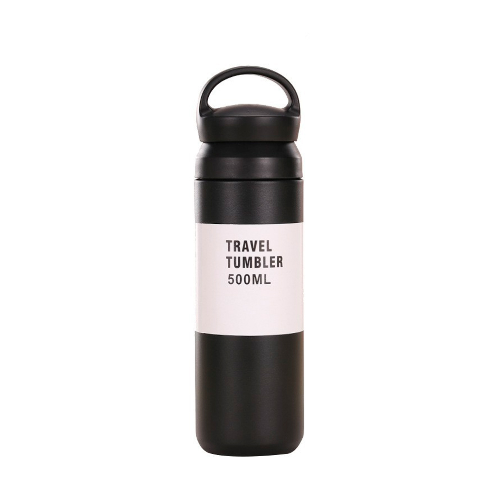 Спортивна термопляшка Merlion, об'єм 500 мл., подвійна кришка з ручкою, колба з нержавіючої сталі, чорна