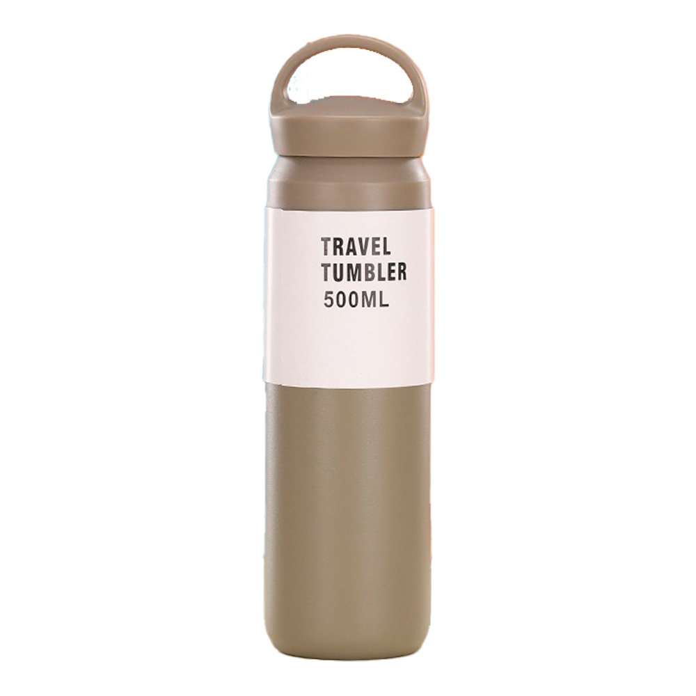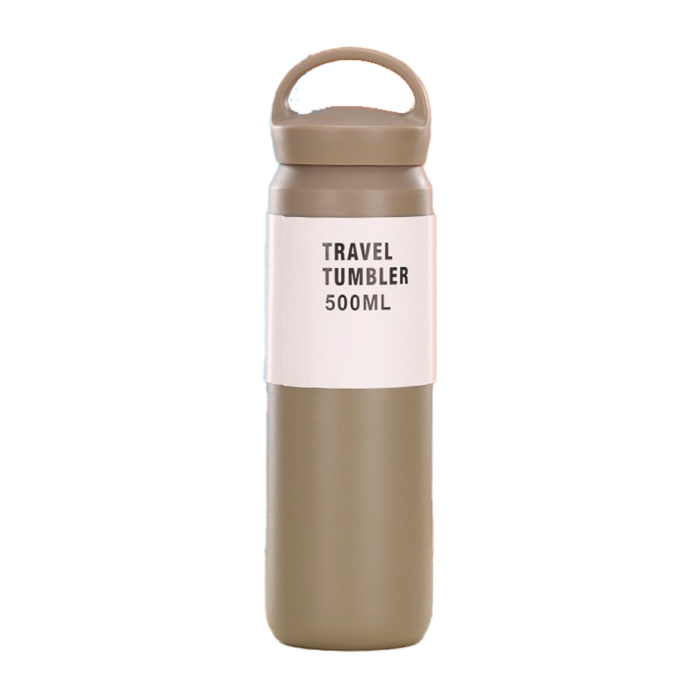 Спортивна термопляшка Merlion, об'єм 500 мл., подвійна кришка з ручкою, колба з нержавіючої сталі, сіра