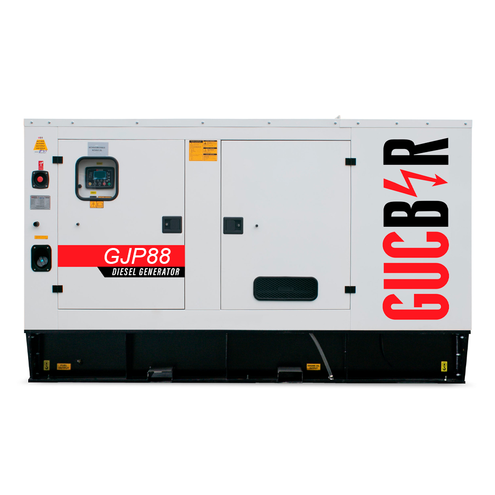 Дизельний генератор Gucbir GJP88 з двигуном PERKINS 1104A-44T, 88 кВА/70,4 кВт, генератор Maranello M90, витрата при 75% навантаження - 14,8 літрів/год, 230/400 В, 50 Гц (AVR SX460+ATS), IP23/H, 2750x1100x1860 мм, 1440 кг, 300 л