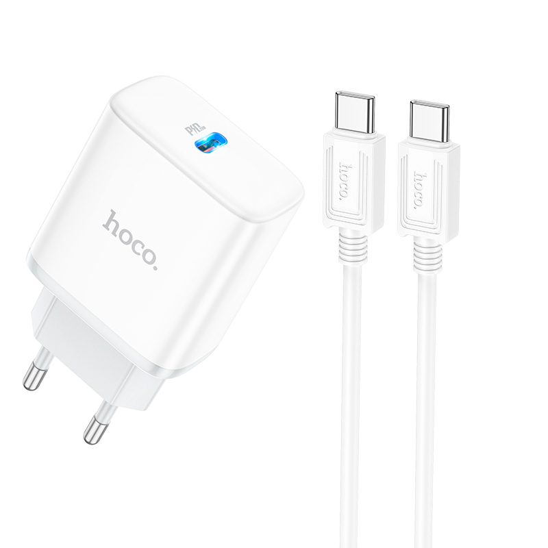 Набір СЗУ 110-240V HOCO C105A + кабель Type-C, порти: USB-C+USB, PD20W+QC3.0, кабель 1м, White, Box