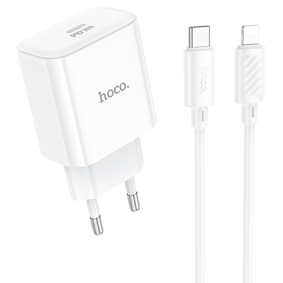 Набір СЗУ 110-240V HOCO C76A Pro+ Lighting кабель, USB-C, PD30W, кабель 1м, White, Box