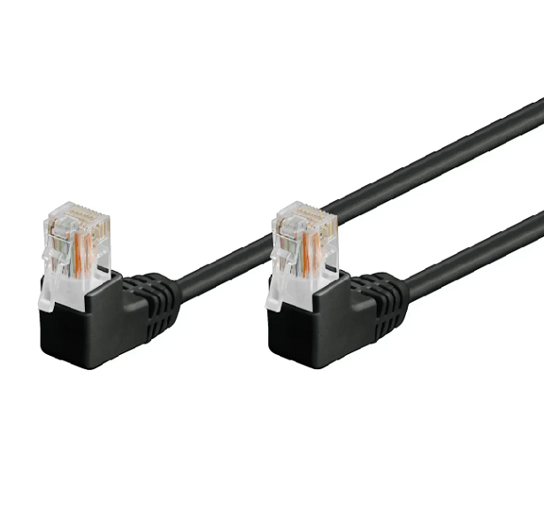 Патч-корд литий FTP, RJ45(прямий/кутовий), екранований, FTP5e 0.29m, patch D=4.9mm AWG26 2x90° CU, чорний, Q200