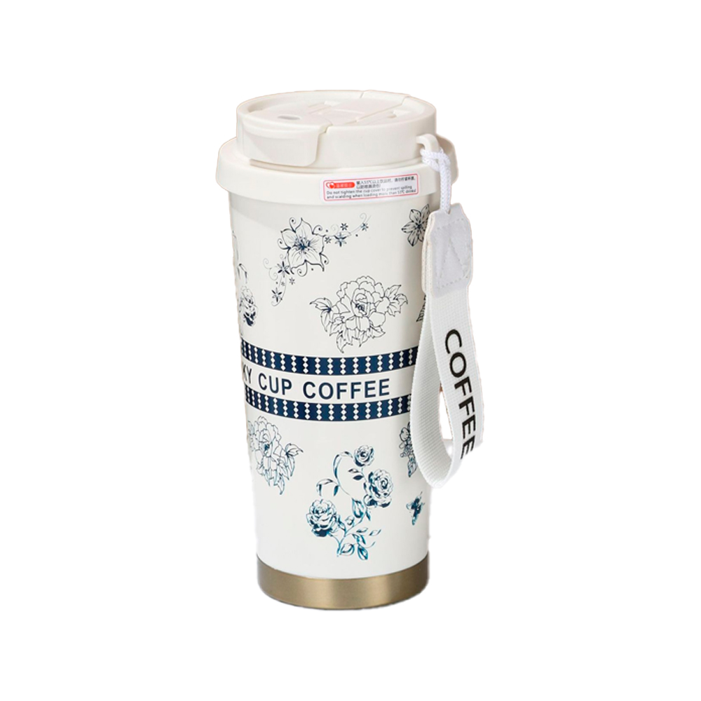 42724 TermCoffee-500W Термокухоль пластиковий Merlion Coffee, з трубочкою, об'єм 500мл., колба з нержавіючої сталі, біла шт 6 + 280.00 ₴