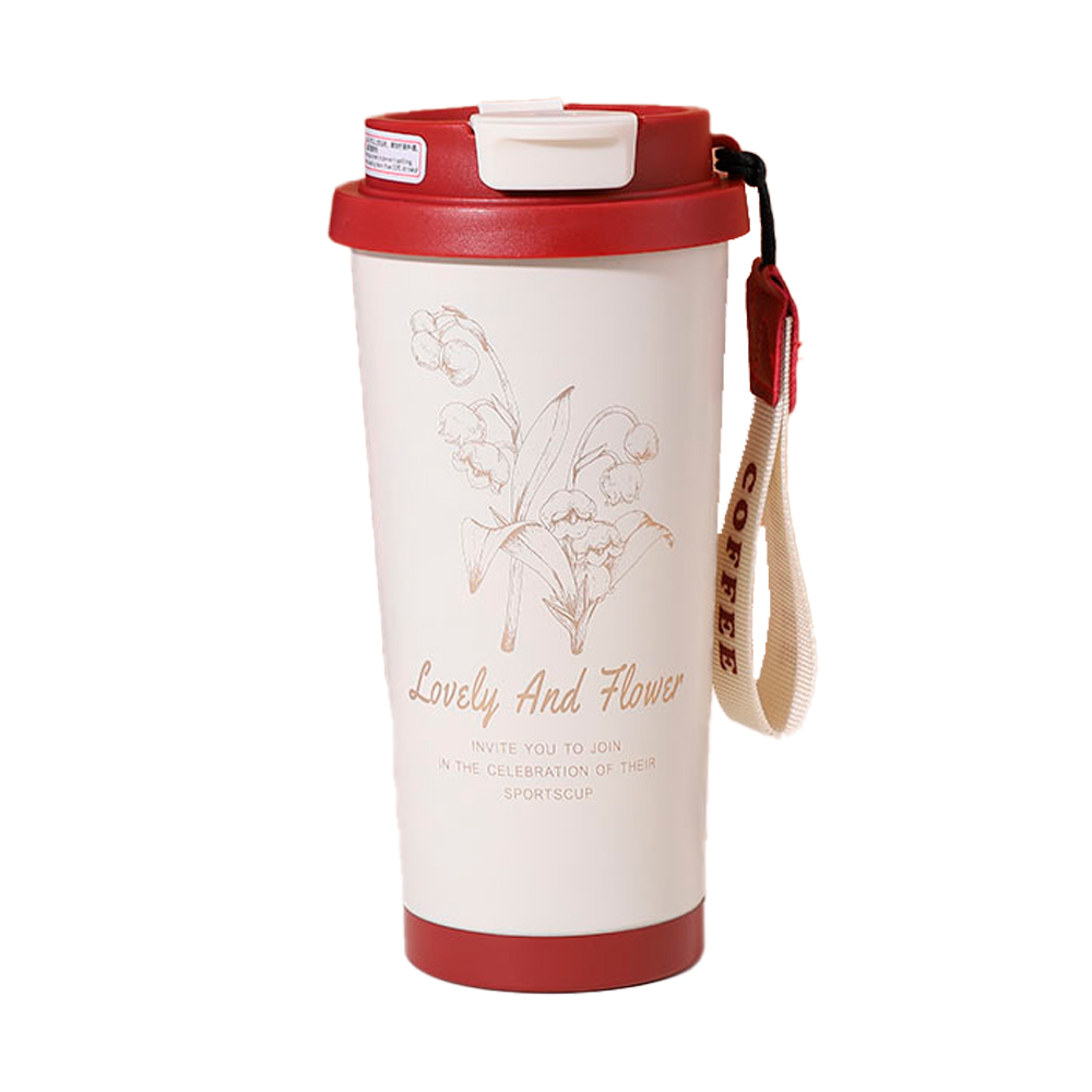 42726 TermCoffee-500WR Термокухоль пластиковий Merlion Coffee, з трубочкою, об'єм 500мл., колба з нержавіючої сталі, білий з червоним шт 6 + 280.00 ₴