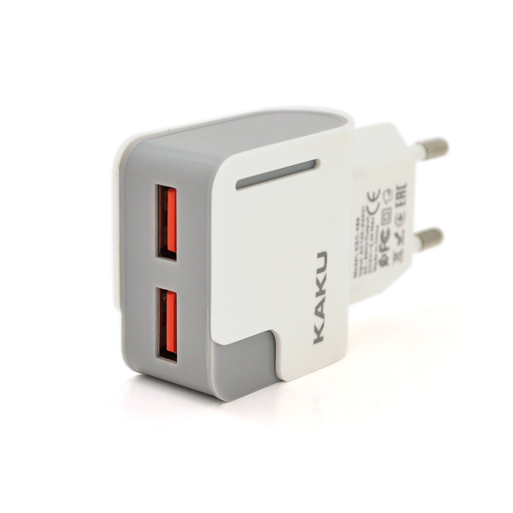 СЗУ AC100-240V iKAKU KSC-489 PUYAO, 2xUSB, Output: DC5V/2.4A (12W), White, Blister-box