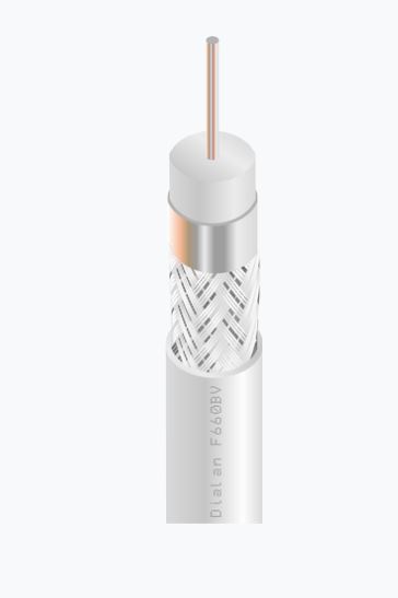 Кабель коаксіальний Dialan RG6U-48W, CCS, 1,02 мм., жовтий екран 48%, 75 Ом, оболонка 6,8мм біла, бухта 100м