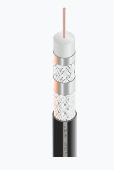 Кабель коаксіальний BiColil HARDY F6SSEF, CCS, 1,02 мм., чотиришаровий екран c гелем 60 + 40%, 75 Ом, оболонка 6,8мм чорна, бухта 100m