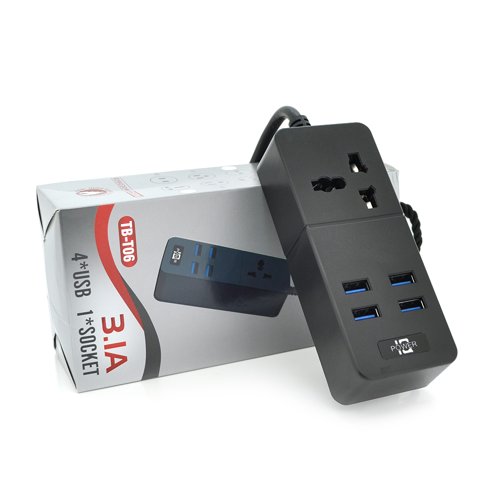 Мережевий фільтр ТВ-Т06, 1 розетка + 4 USB, 2 м, перетин 3х0,75мм, 2500W, Black, Box