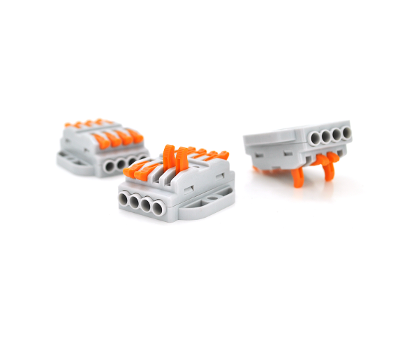 Опис: Клемна колодка з натискними затискачами 4-провідна WAGO K223-4P призначена для використання в розподільчих коробках. Колір сірий.