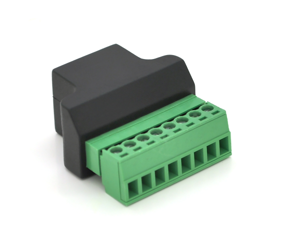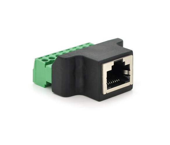Клемна колодка 8-розрядна Клемна колодка 8-розрядна + RJ45 8P8С мама - перехідник для передачі сигналу за допомогою крученої пари між пристроями, у одного з яких немає роз'єму RJ45.