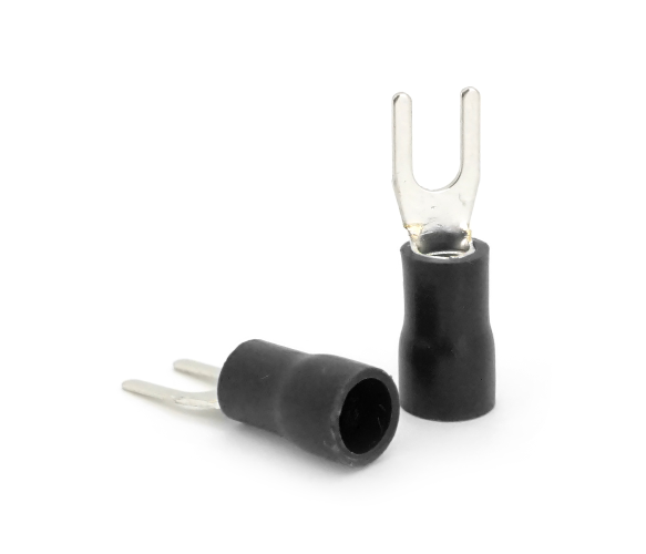 Це ізольовані кліматичні клеми типу "U" завдовжки 0.7 мм, моделі SV3.5-4, призначені для підключення дротів перетином від 2.5 до 4.0 мм. Їхнє виготовлення з латуні дозволяє витримувати максимальний струм до 37A. Упаковка містить 100 штук кліматичних клем, їх ціна вказана за упаковку.