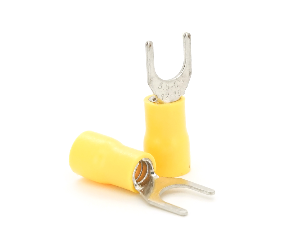 Це упаковка із 100 ізольованих клем типу "U" з максимальним струмом 48А. Вони підходять для дротів діаметром від 4.0 до 6.0 мм і призначені для обтискання. Клеми виготовлені з латуні та мають довжину 0.7 мм. Ціна вказана на упаковку.