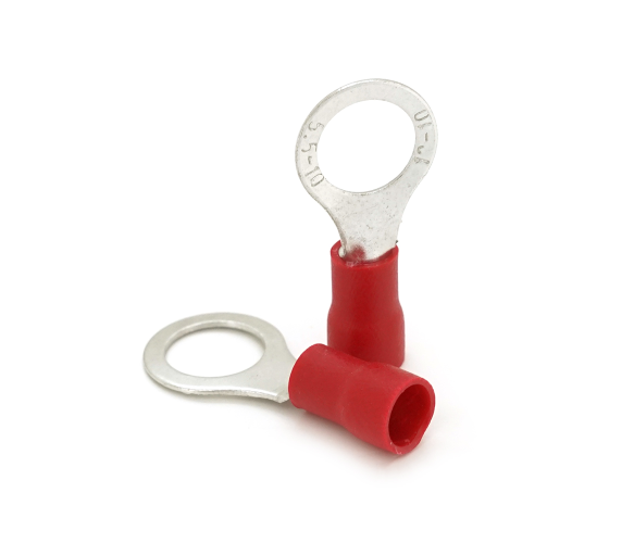 Клема типу "О" RV5.5-10 призначена для з'єднання ізольованих дротів діаметром від 4.0 до 6.0 мм. Клема виготовлена з латуні та підходить для обтискання. В упаковці міститься 100 штук даного типу клем. Ціна вказана на упаковку.
