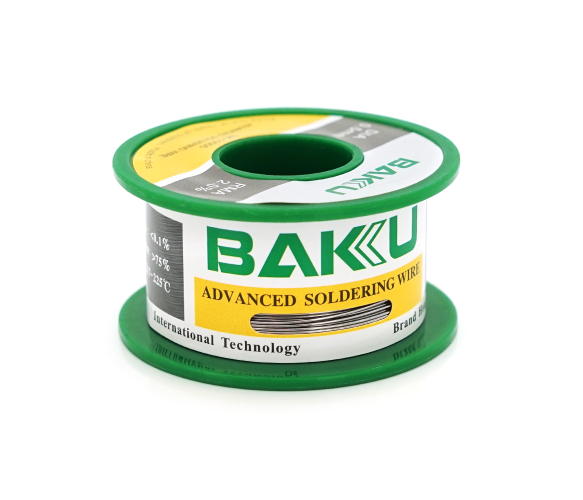 Технічні характеристикиПрипій BAKKU дротянийЗміст олова Sn 97%Вміст срібла Ag 0,3%Зміст міді Cu 0,7%Зміст флюсу 2%Діаметр 0,5 ммВес 40 г