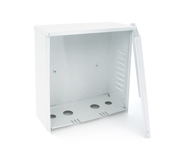 Дозволяє робити монтаж апаратури як модульного, так і звичайного виконання. Дверцята корпусу закривається на замок.