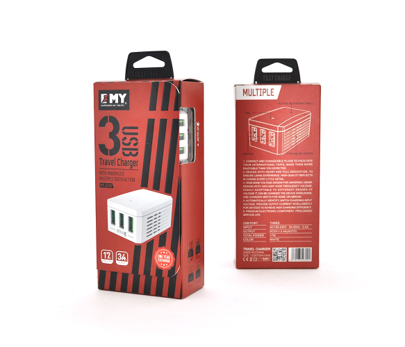 Набір 2 в 1 СЗУ With Micro-Usb Cable 110-240V MY-A300, 3 x USB, 5V / 17W, Output: 5V / 3.4A, White, Blister- box