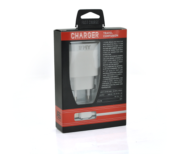 Набір 2 в 1 СЗУ With Iphone Cable 110-240V MY-A303Q, 1 x USB, 5V / 15.5W, Output: 5V / 3.1A, White, Blister- box, Q25