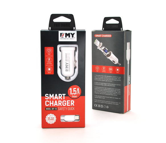 Набір 2 в 1 АЗУ із кабелем Micro-USB DC12-24V MY-10, 1 x USB, 5V/7.5W, вихід: 5V/1.5A, білий, блок-блістер, Q25.