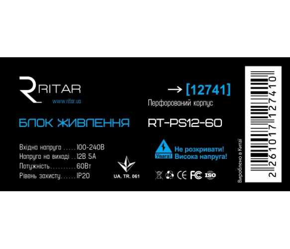 Імпульсний блок живлення Ritar RTPS12 - допоможе забезпечити енергією систему відеоспостереження, сигналізацію, освітлення, пристрої автоматики і інші пристрої. Даний блок крім подачі енергії, стабілізує напругу. За рахунок цього досягається максимальний рівень продуктивності і збільшується термін експлуатації.