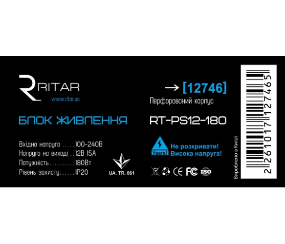 Імпульсний блок живлення Ritar RTPS12-180 - подасть енергію і стабілізує напругу в системах відеоспостереження, сигналізації, освітлення, пристроях автоматики і ін. Важливо зробити правильний вибір блоку, який збільшить продуктивність і термін експлуатації пристроїв! Ritar RTPS12-180 - твій правильний вибір!