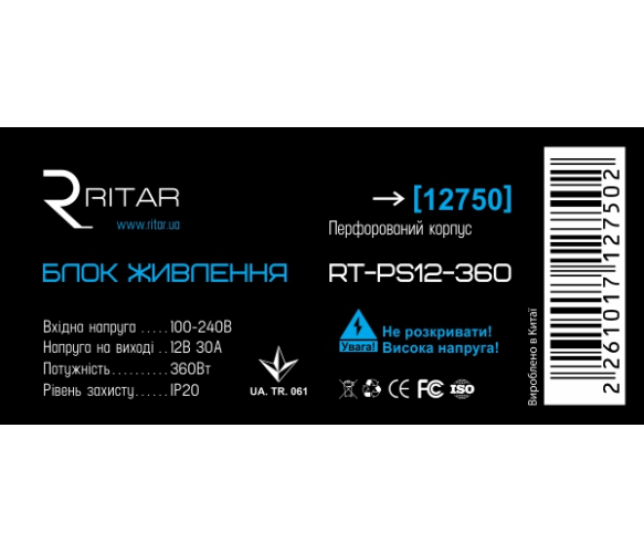 Імпульсний блок живлення Ritar RTPS12 - допоможе забезпечити енергією систему відеоспостереження, сигналізацію, освітлення, пристрої автоматики і інші пристрої. Даний блок крім подачі енергії, стабілізує напругу. За рахунок цього досягається максимальний рівень продуктивності і збільшується термін експлуатації.