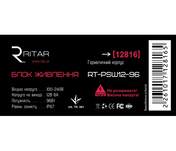 Імпульсний блок живлення герметичний Ritar RTPSW12-96 - подасть енергію і стабілізує напругу в світлодіодних стрічках, системах відеоспостереження, освітлення та ін. Важливо зробити правильний вибір адаптера, який збільшить продуктивність і термін експлуатації пристроїв! Адаптер Ritar RTPSW12-96 - твій правильний вибір!