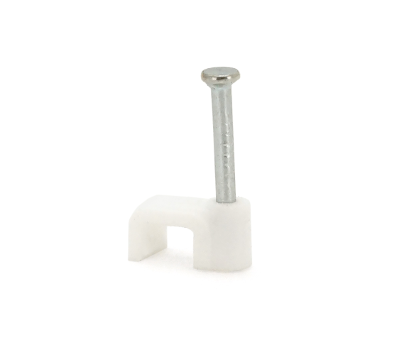 Скоби для кріплення кабелю з цвяхом з розжареної сталі виготовляються з пластику, що є морозостійким матеріалом.