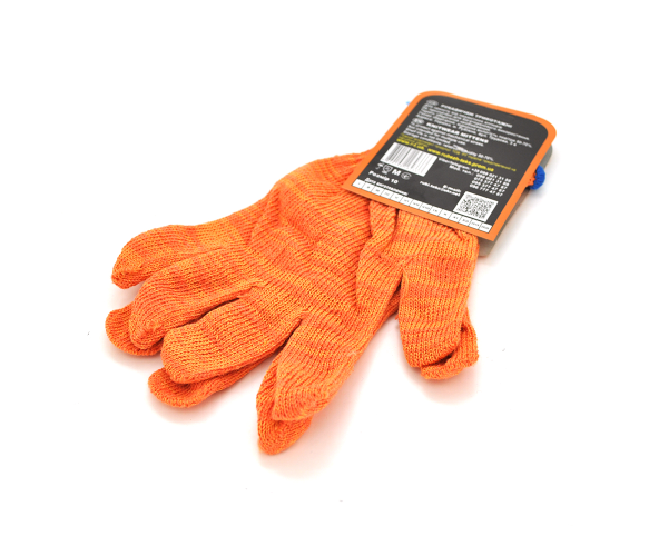 Опис: Помаранчеві бавовняні рукавички для захисту рук від бруду та механічних пошкоджень. Ідеально підходять для використання в ремісничих та будівельних роботах.