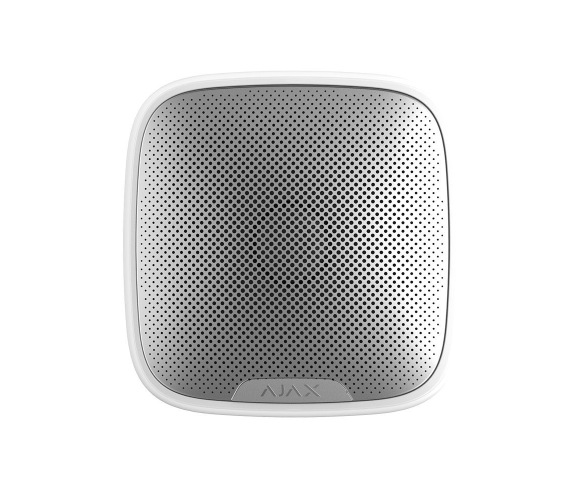 Бездротова вулична сирена Ajax StreetSiren white призначена для візуального та звукового оповіщення про тривогу. При тривозі, розумна централь сигналізації Ajax Hub передає бездротовий сигнал на сирену. Після отримання сигналу тривоги від централі сирена спрацьовує і лунає сигнал тривоги.