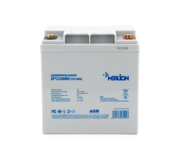 Акумуляторна батарея MERLION AGM GP12260M5 – надійний електричний компаньйон для ваших пристроїв. Має герметичний міцний корпус, який прослужить довго і щасливо.