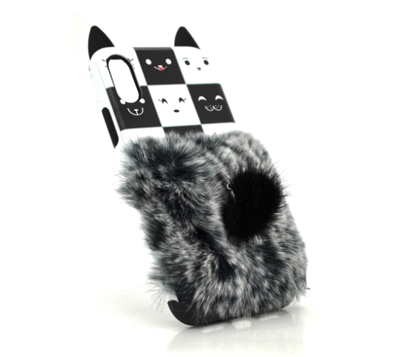 Опис: Накладка для iPhone 6/6s із зображенням пухнастого кота з хвостом, виконана в чорному кольорі зі смарт-кільцем.