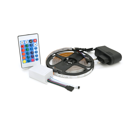 Світлодіодна стрічка 5m RGB в котушці, з контролером, пультом і блоком живлення. Відмінною рисою цієї моделі LED лени є розширена контролером і пультом управління комплектація.