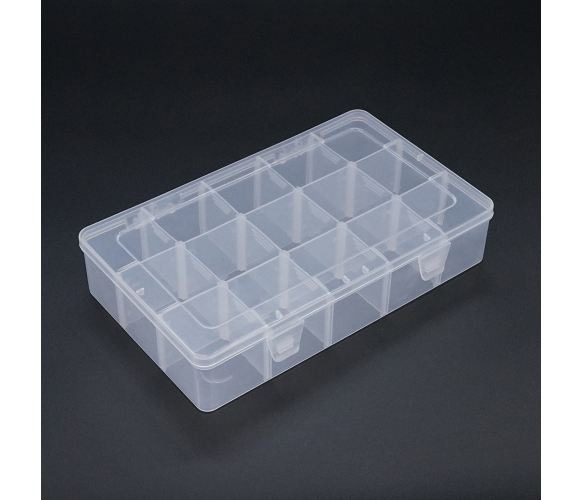 Опис: Пластиковий ящик для радіодеталей призначений для зручного зберігання радіодеталей та інших дрібних предметів. Скринька має 15 великих відділень, що забезпечує зручну організацію та зберігання різних предметів.