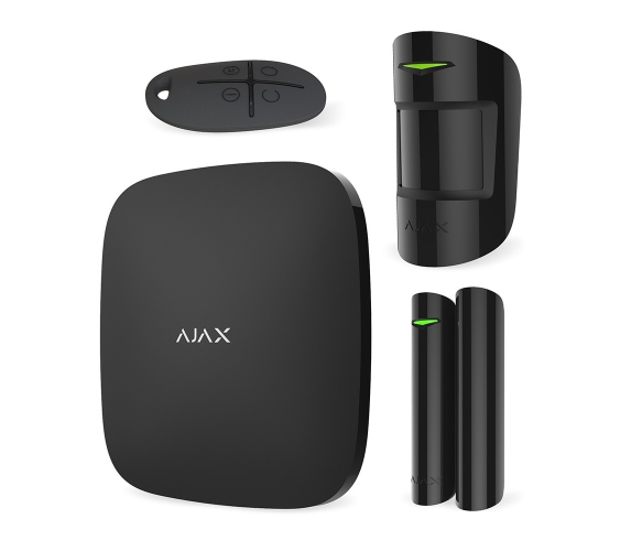 Ajax StarteKit – стартовий комплект бездротової системи безпеки Ajax. У набір входять інтелектуальна централь Ajax Hub, датчик руху Ajax MotionProtect, універсальний датчик відкриття вікна/двері Ajax DoorProtect та брелок для керування охоронною системою Ajax Space Control.