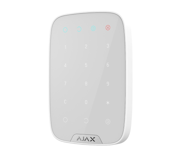 Бездротова сенсорна клавіатура Ajax KeyPad використовується для управління охоронною системою Ajax. При натисканні кнопки або введення цифрового коду пристрій по радіоканалу відправляє сигнал на центральний блок сигналізації. Централь обробляє сигнал і включає або відключає режим охорони. Якщо користувач змушений зняти систему з охорони не по своїй волі, передбачена функція зняття з охорони з примусу, яка відправляє сигнал тривоги на ПЦС.