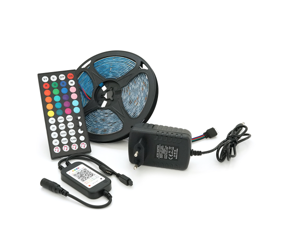 Комплект музичної світлодіодної стрічки 5050 RGB 5 метрів є комплексним рішенням для створення динамічної та насиченої світлової атмосфери в приміщенні. У комплект входить музична світлодіодна стрічка, пульт дистанційного керування, блок живлення та bluetooth модуль, що дозволяє керувати освітленням за допомогою мобільного пристрою. Стрічка має захист класу ip65, що забезпечує її захист від пилу та вологи.