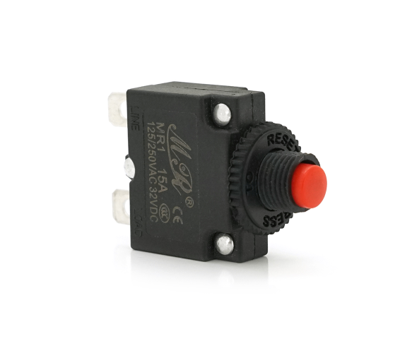 Термічний запобіжникНомінальна напруга: 120VAC / 250VACСтрум спрацьовування 15 АТермін служби пристрою: 10000 разівОпір контактів: ≤ 40 мОмТип скидання: включення натисканням