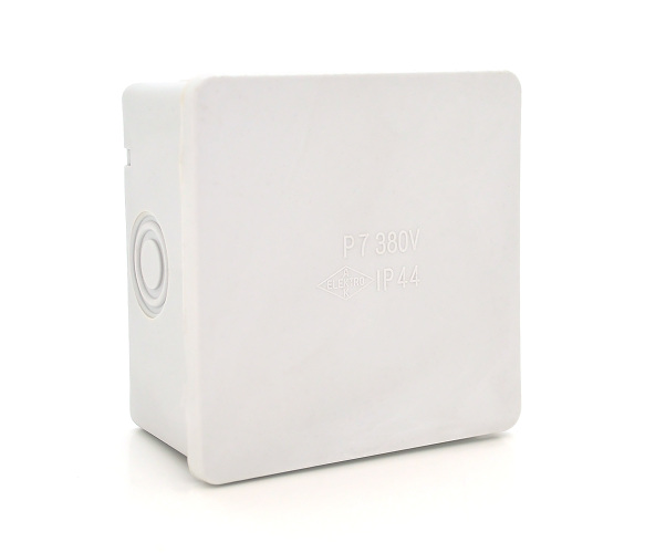 Опис: Коробка розподільна зовнішня PIPO P7 призначена для захисту електричних з'єднань від вологи та пилу. Виготовлена із пластику з гладкими стінками, має білий колір.