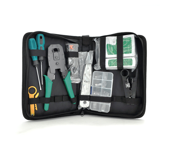 Даний комплект містить базові інструменти, без яких неможливо провести монтажні роботи прокласти кабельні лінії, встановити мережеве обладнання, налаштувати мережу.