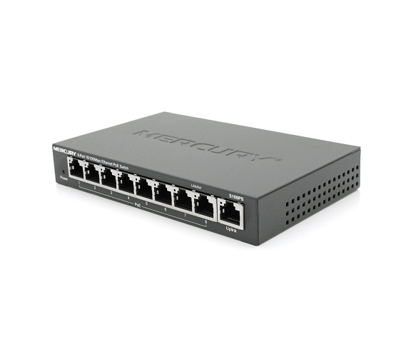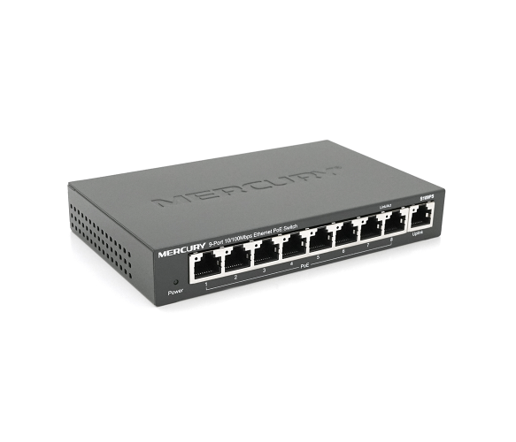 - Кількість та параметри мережевих портів POE: 8* Downlink Ethernet портів 10/100 Мбіт/с