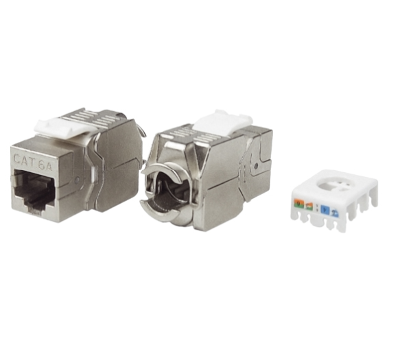 Модульний роз'єм OK-net Кат.6А FTP (180 °, toolless) забезпечує високоякісне з'єднання для мережевих кабелів Категорії 6А.