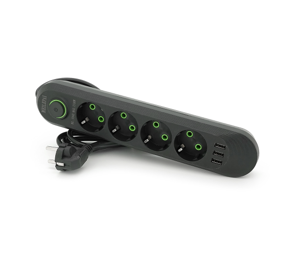 Мережевий фільтр F04U – призначений для забезпечення енергією та захисту твоїх гаджетів від: короткого замикання, імпульсних перешкод, стрибків напруги. Фільтр обладнаний трьома USB портами і чотирма розетками, так що місця вистачить на всіх!