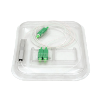Дільник оптичний Coupler PLC оконцованнимі коннекторами SC / APC з кількістю висновків 8, від кількості висновків залежать розміри корпусу від 60 × 7х4 мм до 80 × 20 × 6 мм. Планарні оптичні сплітери є високопродуктивними, надійними і компактними пристроями для поділу потужності оптичного сигналу, які спеціально розроблені для застосування в мережах FTTH, PON і CATV. Засновані на унікальній хвильової технології іонного обміну в скловолокна. Ці сплітери / розгалужувачі мають дуже низькі вносяться втрати і PDL (поляризационно залежні втрати), відмінну рівномірність каналів і широкий робочий діапазон довжин хвиль.