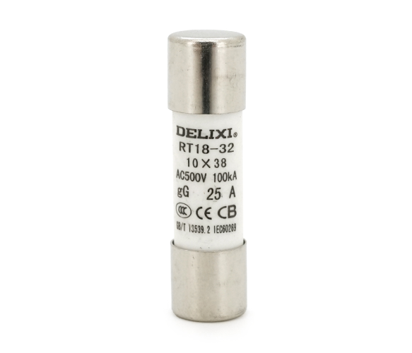 Запобіжник RT18-32, 25A для використовування в електромеражах.Номінальний струм: 25АНапруга: 230В / 380В ~Діапазон робочих температур: від -25 до + 70 ° СТип корпусу: керамікаРозміри мм: 10*38