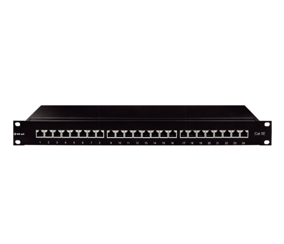 Опис: Патч-панель OK-net - це пристрій з 24 портами, призначений для організації мережевого з'єднання. Вона виконана за стандартом Категорії 5e з екранованим кабелем та має кутове виконання підключення 90°.