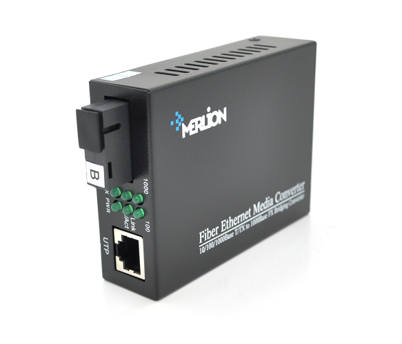 Медіаконвертер Merlion B (IC+175) - використовується в структурованих кабельних системах для перетворення сигналу та подальшого з'єднання оптоволоконного кабелю з витою парою. Це дозволяє збільшити пропускну здатність мережі в кілька разів і позбавити перешкод, що дуже важливо для забезпечення швидкої роботи в офісі або на підприємстві.