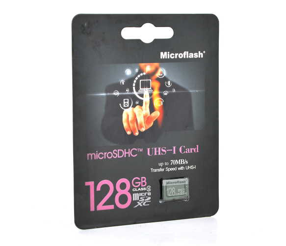Технічні характеристики:Карта пам'яті MicroflashОб'єм пам'яті 128 ГбайтТип картки Micro SDШвидкість передачі даних 70 MB / s,Стандарт швидкості class10Робоча температура: - 20 + 60 ℃