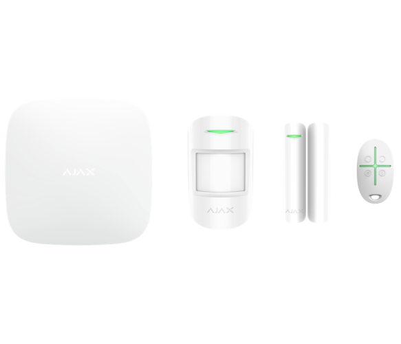Ajax StarteKit Plus - стартовий комплект бездротової системи безпеки Ajax з хабом другого покоління Hub Plus, датчиком руху Ajax MotionProtect, універсальним датчиком відкриття вікна/двері Ajax DoorProtect та брелоком для керування охоронною системою Ajax Space Control.